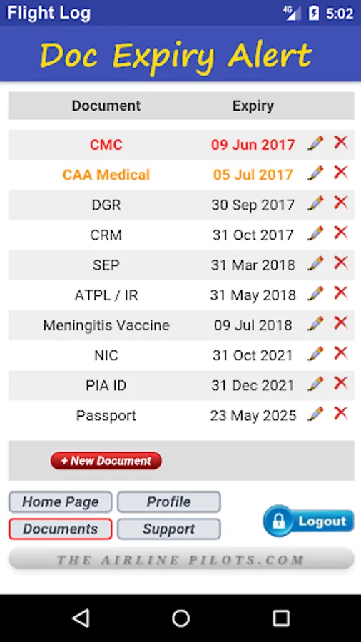 You can add important documents names (e.g. Licences etc) and their expiry dates in the document section. A document within 30 days of expiry will give an amber alert while a document within 5 days (or one that has expired) will give a red alert.