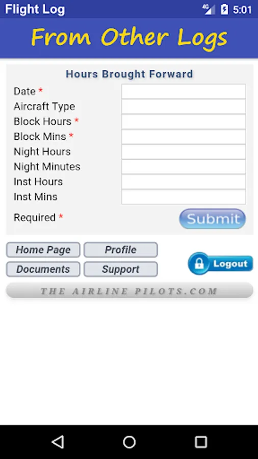 This app shares a common database with the online version of this flight log. Therefore you can add and view flight records by either this app or the online version (https://www.theairlinepilots.com/flightlog) using the same username and password.