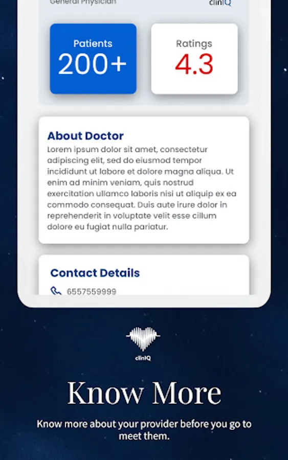clinIQ is an intuitive clinic management app designed to help healthcare professionals streamline their operations, this platform provides an easy-to-use, comprehensive suite of tools to help with everything from scheduling appointments to managing patient records. This app allows users to manage their patients' appointments, medical history, insurance information, and more. It also offers a patient portal that allows patients to book appointments, check-in, pay bills, and access their medical records.