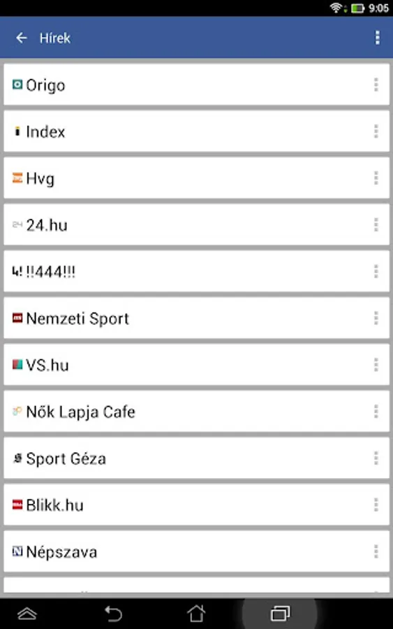 Origo, Index, HVG, 24.hu, !! 444 !!!, National Sports, VS.hu, Women Cafe Journal, Sports Geza, Blikk.hu, Népszava, Bors Online, Reply, ATV, Portfolio, Financial Centre, STOP, NOL , You can reply, SG, Google News, I Love Hungary, News search, MNO, Private Bankers, News TV, Inforadio.hu, Ma.hu, Daily, Richpoi, Velvet, Starity, Világgazdaság Online, Online Iron People, Propeller, Zinc, Hungary Orange , csakfoci.hu, Story Online