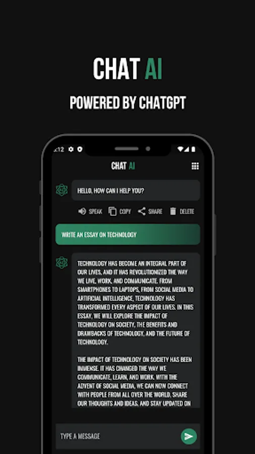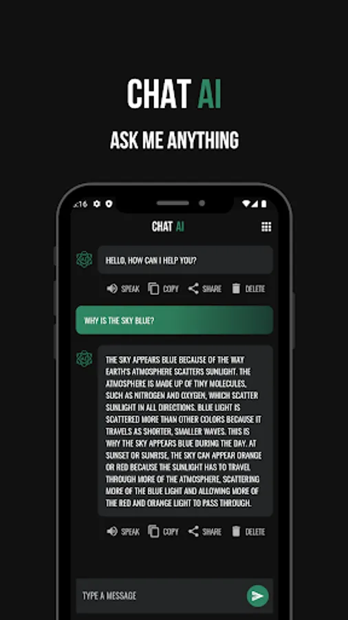 Chat AI is a groundbreaking app that brings the power of artificial intelligence right to your fingertips. With Chat AI, you can engage in natural and interactive conversations with an AI that is powered by the state-of-the-art ChatGPT API developed by OpenAI. Get ready to experience a new level of intelligent conversation!