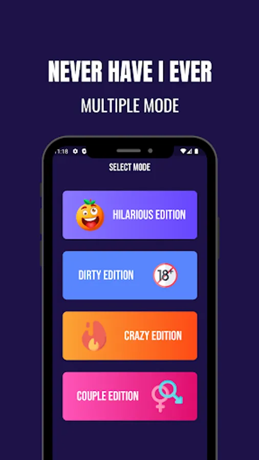 Never Have I Ever is the ultimate party game app for people who love to get crazy, dirty, hilarious or simply spend quality time with their significant other. With multiple game modes to choose from, including Crazy, Dirty, Hilarious, and Couple, this app is perfect for any occasion.