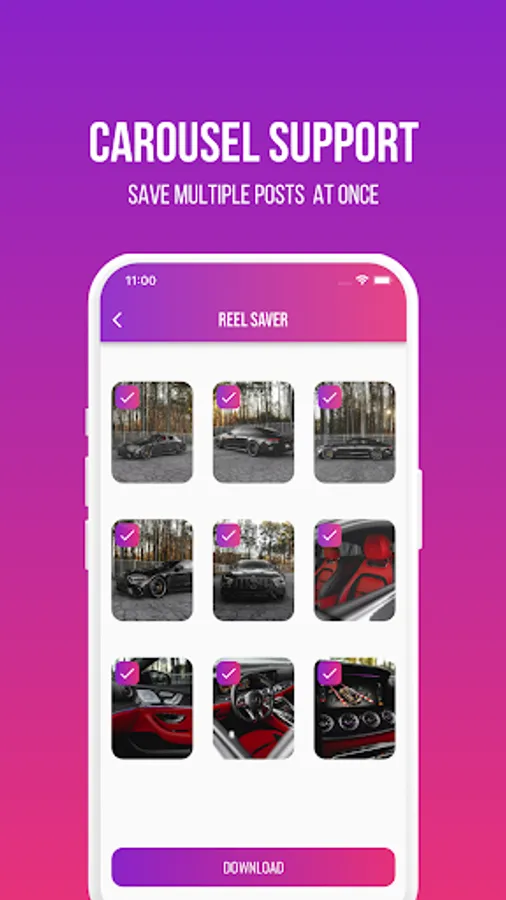 Save Reels: Save captivating Reels from your favourite creators with just a single tap. Whether it's hilarious skits, inspiring tutorials, or jaw-dropping dance moves, Reel Saver has got you covered.