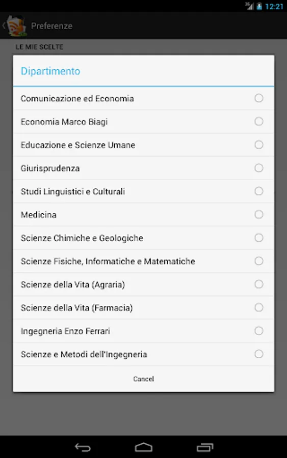 Facoltà/Dipartimenti al momento supportati: