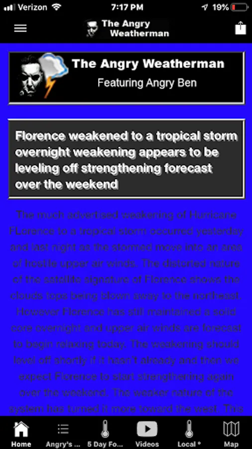The Angry Weatherman is a convenient application to obtain accurate local weather. It is essentially 2 applications in 1, with a NYC-centric, handmade forecast, and briefing by Ben Scott of Meteorologist Joe CIoffi's NYCWeatherNOW.com, and Angry Ben's Angry Weather on Facebook. In addition to the NYC area forecast, there is also access to national radar, satellite, and most weather stations/forecasts throughout the United States. The Angry Weatherman is the only weather app you need when planning your week in the New York City area, taking into consideration the nuances of New York City's micro-climate, something the majority of other apps do not do. With access to other weather stations across the Nation, it can also double as your go to source when traveling to another location, or if you live in other parts of the Country aside from New York City.