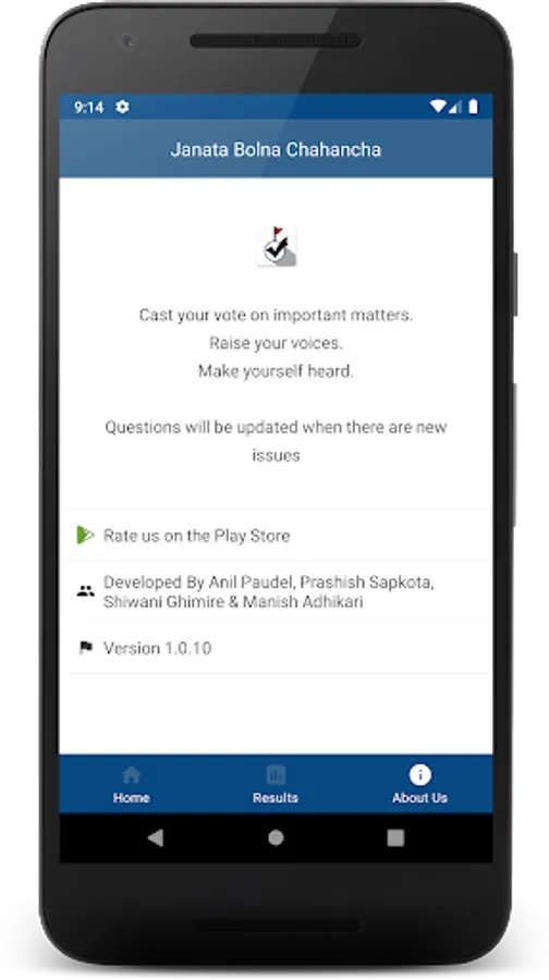 Janata Bolna Chahancha is a real-time voting platform to vote on important issues. We post polls regarding the latest status quo of Nepal.