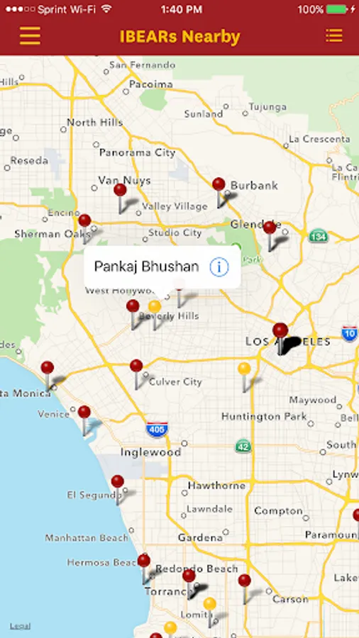 The IBEAR App features IBEARs Nearby. In the airport in a new city? The IBEARs Nearby feature will tell you in seconds which IBEAR Alumni are nearby. One click and you have sent a text message and made a connection. The App helps you build and organize your network.