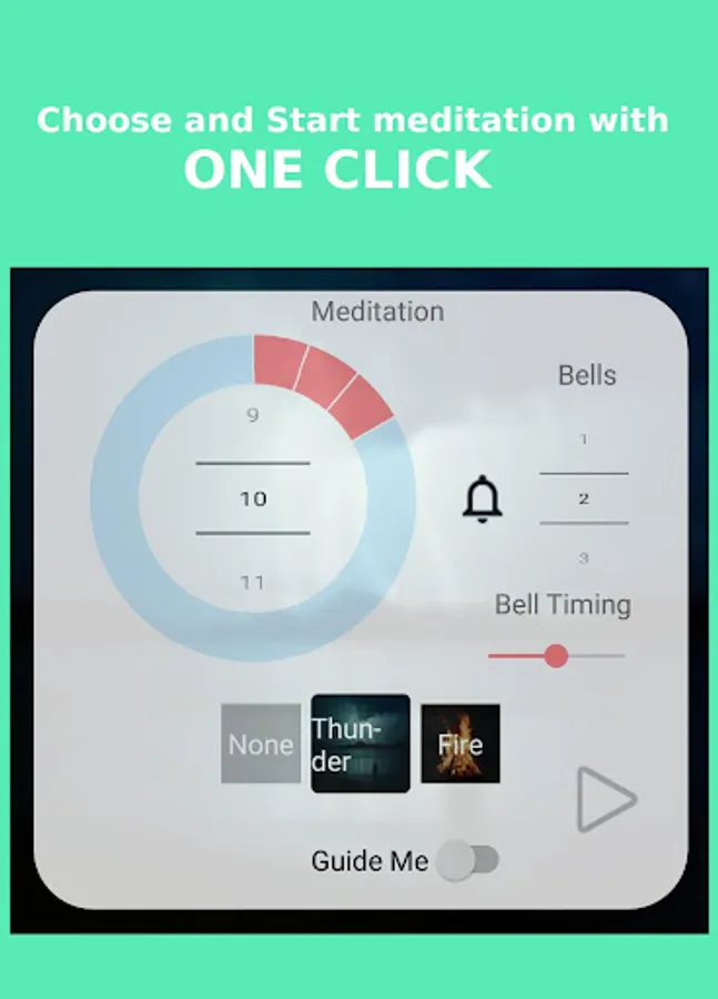 A simple meditation and relaxation app for both beginners and advanced meditators. Easily controllable bells for advanced meditators. Mixable soothing background sounds like rain, thunder, fire, forest, night to put you in a relaxed mood. Background sounds like white noise, brown noise, pink noise can help to suppress external noises during meditation, doing work, or studying or any activity requiring concentration. Make your own on background sound by mixing different sounds.