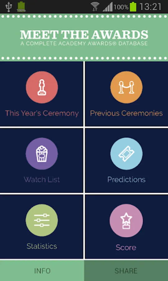MEET THE AWARDS is an app designed for all movie fans who wish to have a full list of this year's Academy Awards nominees at hand plus some great extras!