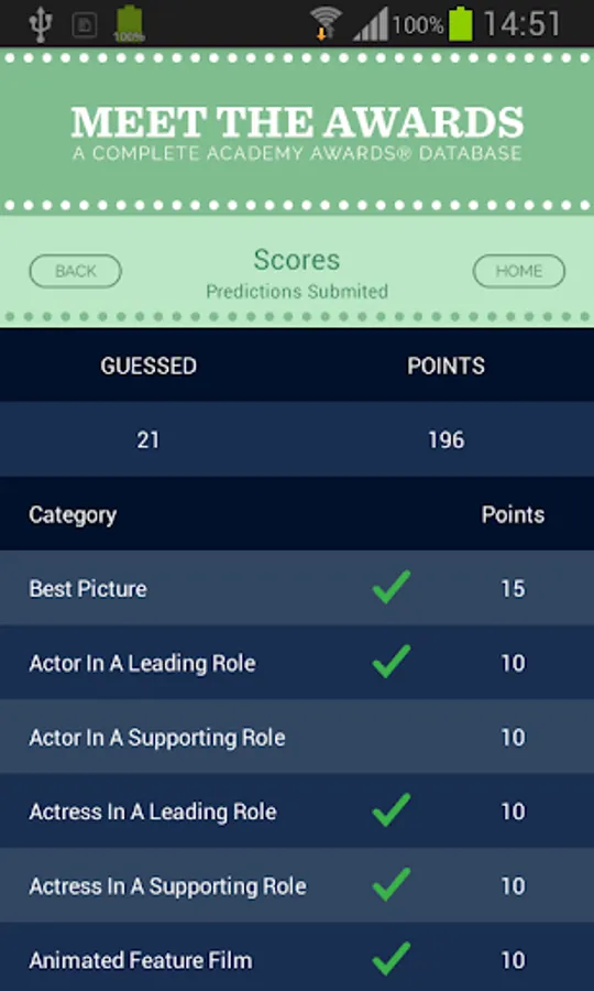 MEET THE AWARDS® allows you to keep a checklist on your iPhone, iPod Touch or iPad of which movies you have watched and which ones you haven't. Not only is it handy during award season but also afterwards as you can catch up on watching all the nominated movies you missed.