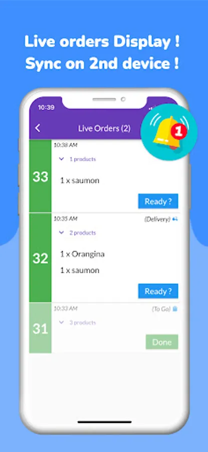 Orders receipts are numbered, dated, customizable and everything is clear in the kitchen for a take-away or To Go command.