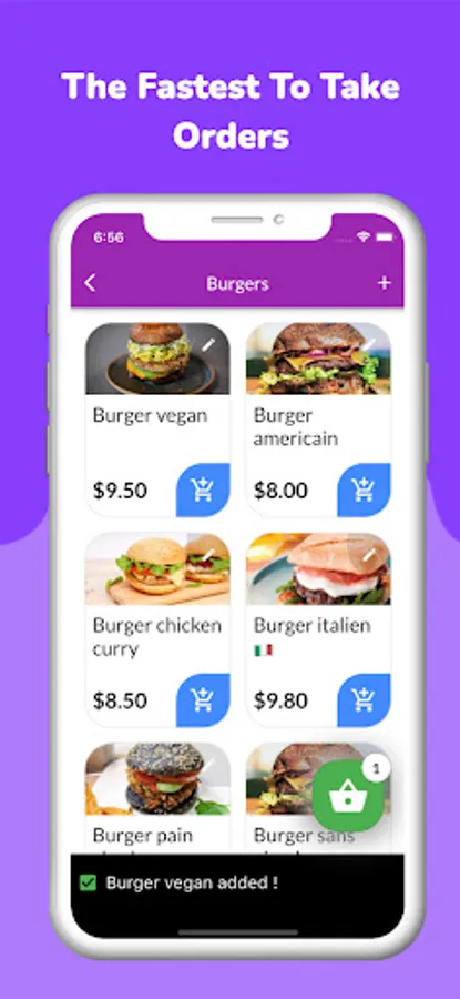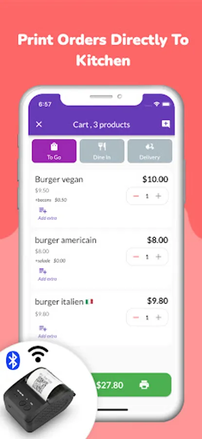 My Cash Register for fast-food allows you to quickly take customers orders and print them directly in Kitchen.