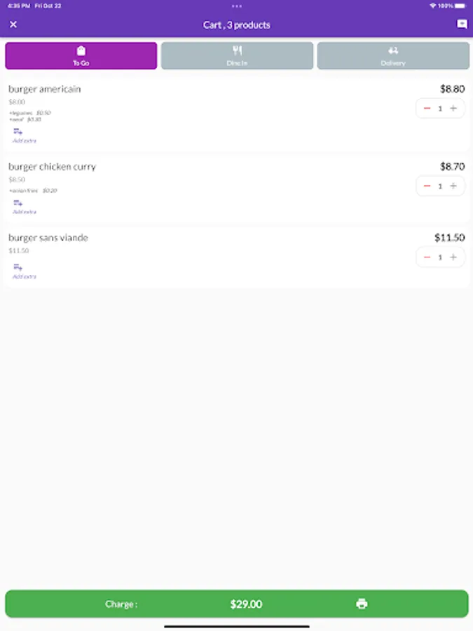 The POS application has been designed for fast-food and pizzeria, it will be easy to add a products, paid or free Extras, all in categories.