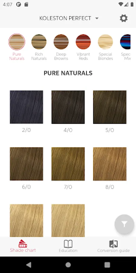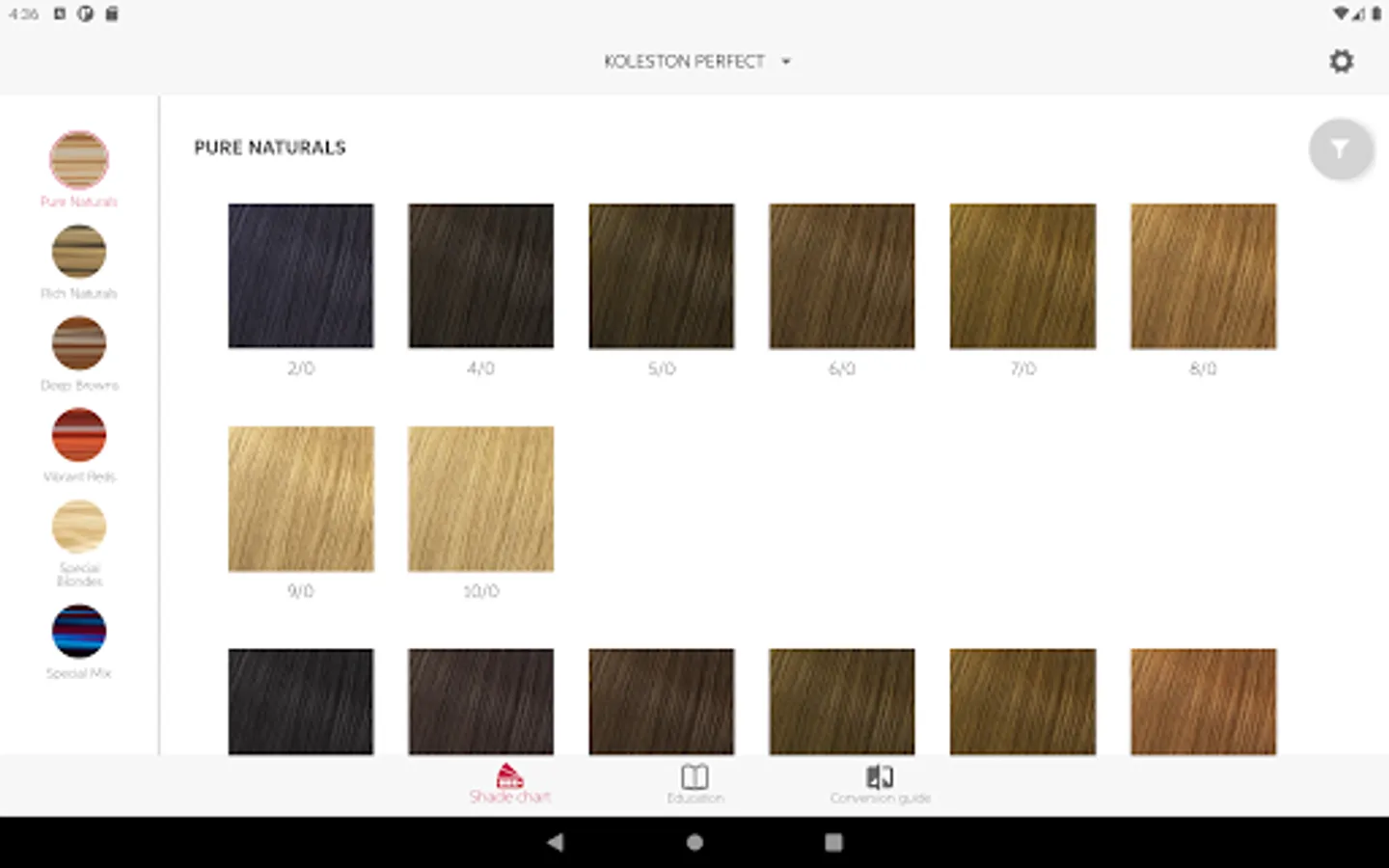 - Digital Shade Chart: Browse the shade families and watch a realistic on-head result under different light conditions. filter relevant shades by selecting the natural base hair color.