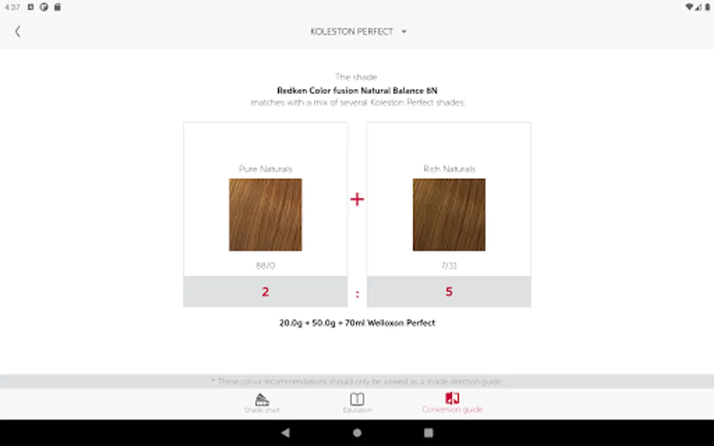 - Conversion Guide: Provides formulas matching Koleston Perfect Me+ shades with other brands.