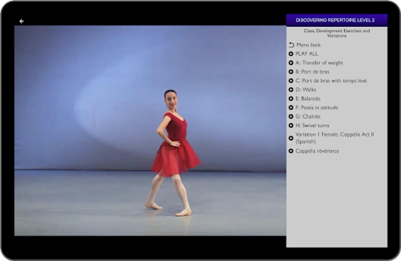 RAD Video is an authorised application of the Royal Academy of Dance and contains video content from the RAD’s Graded and Vocational Graded Examinations in Dance for the study and development of RAD teachers and students. These syllabi challenge students to meet the highest technical and artistic demands of current ballet training and performance, while also providing a way to find enjoyment, achievement and self-expression through dance.