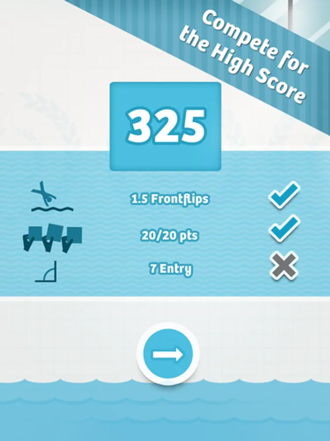 Touch, jump, dive and flip from soaring heights in this amazingly addictive game! For each level you're required to land a perfect dive, and our judges will rate your dive from a 0-10. If you hit the target score, you move upward to onward to harder dives!