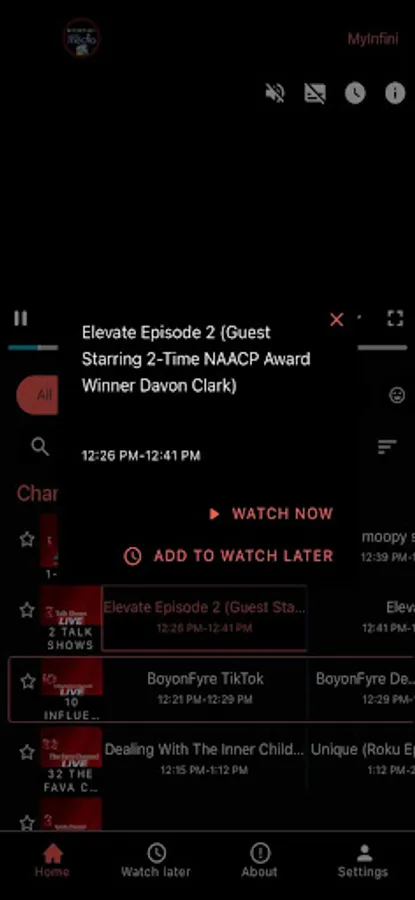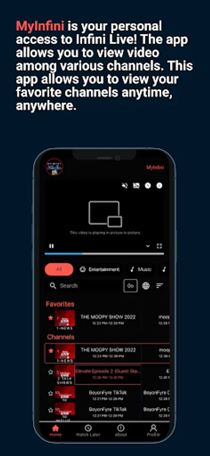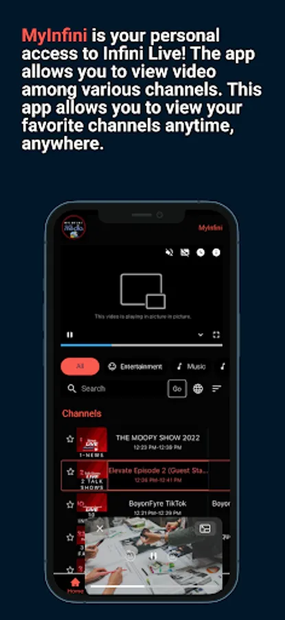 MyInfini is your personal access to Infini Live! The app allows you to view video among various channels. This app allows you to view your favorite channels anytime, anywhere.