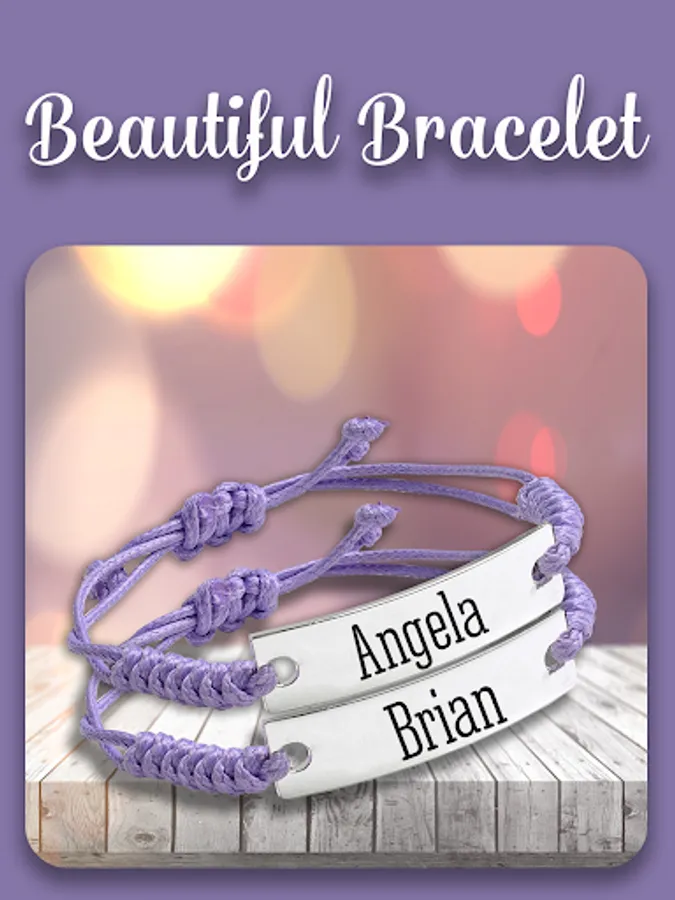 Fantasy name generator app, beautiful stylish name on bracelet with love! With more than 90 backgrounds available, can help you have awesome name on pics photos. If you don't like available backgrounds, Stylish Name Maker app allows you choose new backgrounds from your gallery and write name on this. Save the fantasy name image with stylish background and share on social networks with just one click