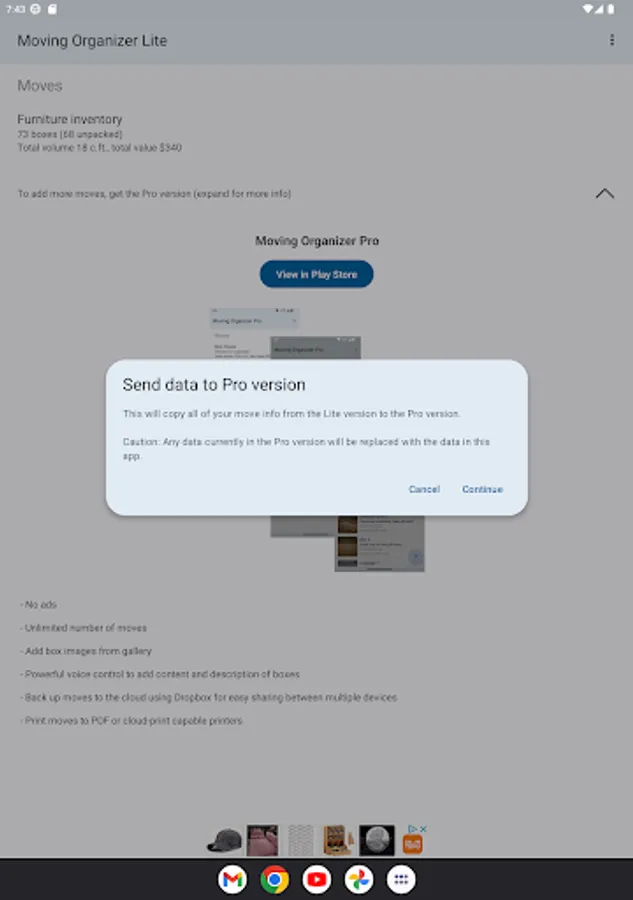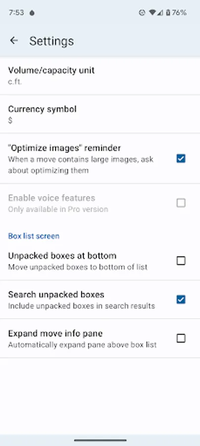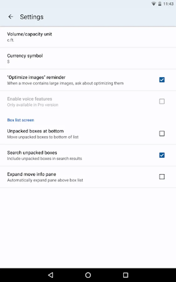 Now includes tracking of volume and value of your boxes - as requested by our reviewers, we now have the ability for you to indicate the value and/or volume of each box. The total value and volume are reported for each move in the main screen. The system will try to guess the currency and volume symbols automatically but you can change them in the settings.