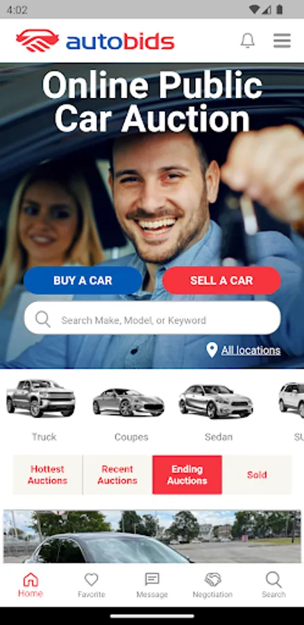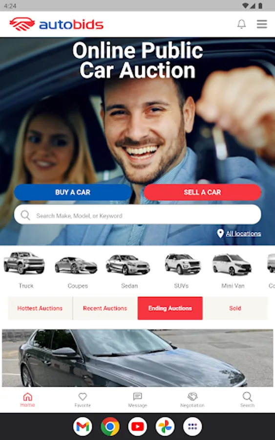 AutoBids is the trusted, user-friendly, joyful public online car auctions app. Bid on any car of your choice on AutoBids. Bid, buy and sell simply on AutoBids. It provides the most convenient, cost-effective, personal, or commercial automobile selling and buying online services. Anyone can participate, with no special requirements. We are levelling the playing field and helping everyday people get in on the fun of bidding on cars online with the click of a button!