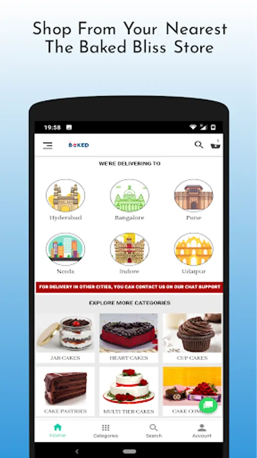 We also deliver cakes in other cities of India. You can enquire the serviceability of your location through our chat support.