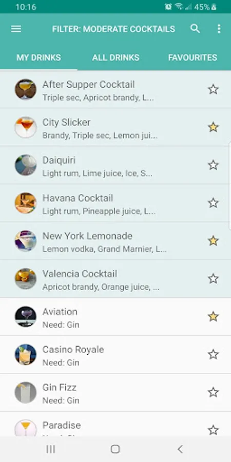 "Favourite Drinks": Tap the star icon beside a drink, or while viewing it to add it to your personal list of favourite drinks!