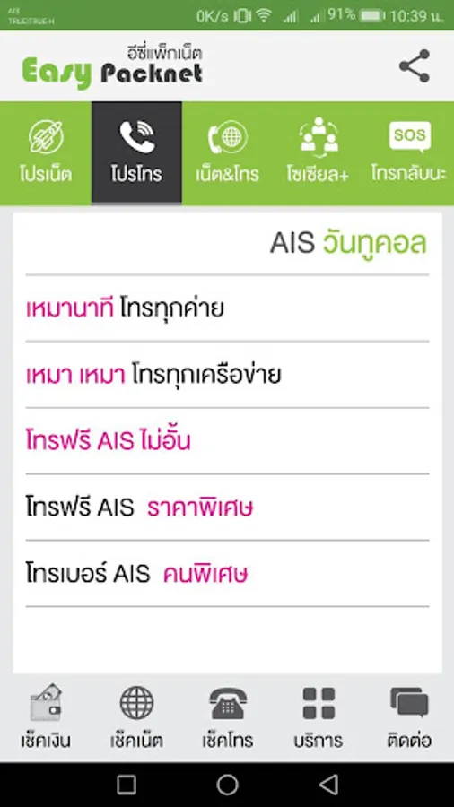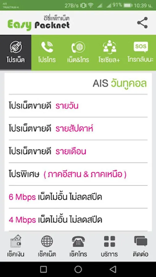 6. Check service: All services for AIS One 2 Call customers (via USSD) are complete. Choose to check from the app, you can check the money, check the day, check the internet, check for the WiFi code, turn off the internet, etc.