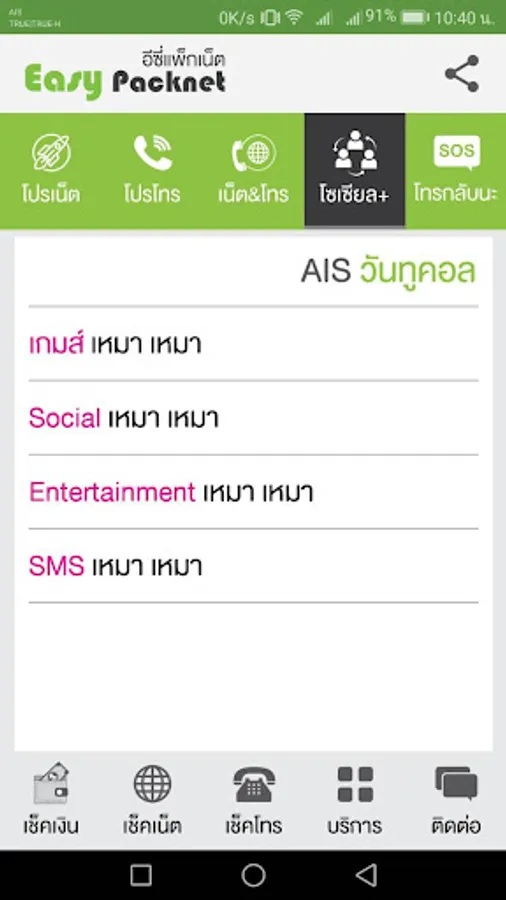 4. Social: Focus on Facebook or LINE unlimited, starting at 5 baht per day including the package Entertainment focuses on watching movies, watching unlimited series via LINE TV app, AIS Play is just 9 baht / day and can not live without the gamers. Unlimited ROV & PUBG plus 9 GB internet for only 200 baht per week.