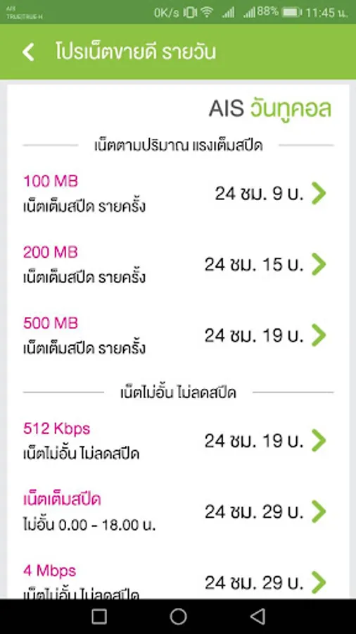 1. Pro Net: Start at ProNet, AIS One 2 Call, Popular Hit Pro, divided into daily, weekly, monthly, and special price promotions in the northeastern & northern regions. Easy to apply. Or choose to use the unlimited internet speed without slowing down 6 Mbps, 4 Mbps, 1 Mbps, 512 Kbps and Max Speed. Full internet speed Including at the point of receiving the AIS Super WiFi signal, we have a package to choose to apply
