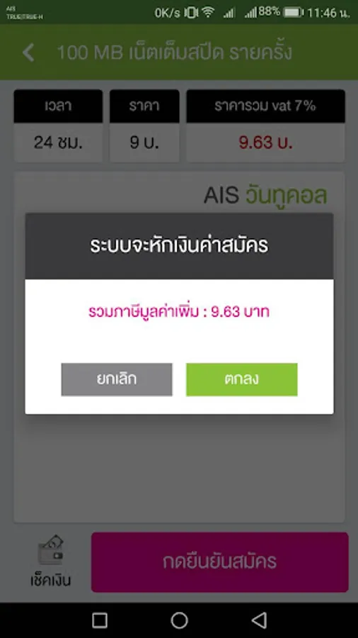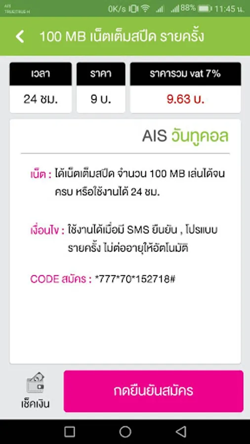 After installing the app (Easy Packnet, AIS top-up), permission is granted to access "call creation and management" by the app's operating principles. When you click to sign up for the promotion, a pop up will appear to confirm your application again. The app will then make a call to apply for the package according to the specified code, just like the normal USSD application process.