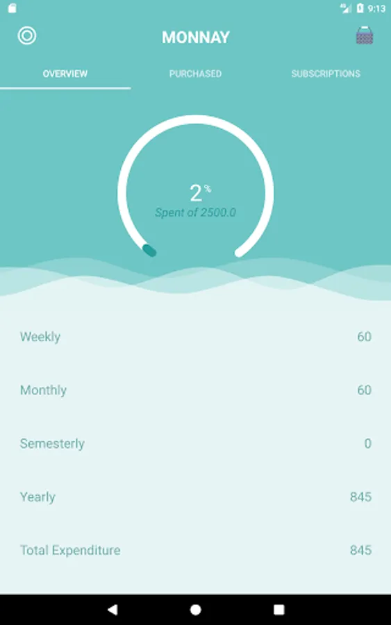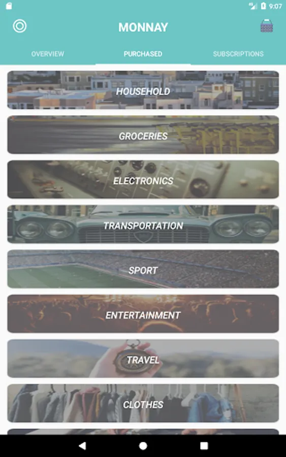 MONNAY - The easiest way to store and manage your financials from the past, present & future! MONNAY has three main tabs which you can use as follows to organize your financials: subscriptions to store your monthly costs, purchased for your daily trips to the shops and the wish list for the items you might like to buy in the future. MONNAY takes all your expenses into account and together with your monthly budget will give a short overview of your monthly expenses, in the overview tab.