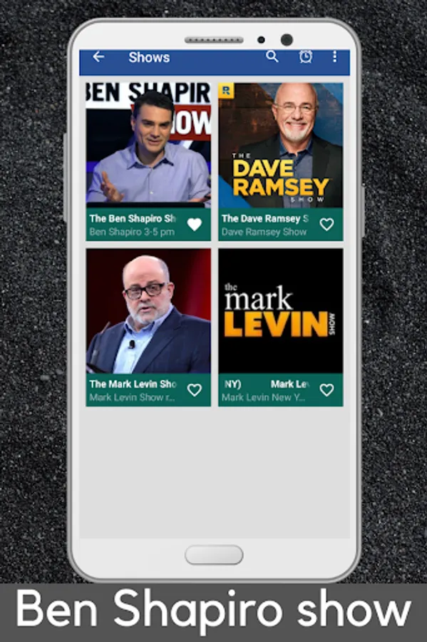 * To find your application you just have to enter the words "Ben Shapiro" and the application will show you the matching radios.
