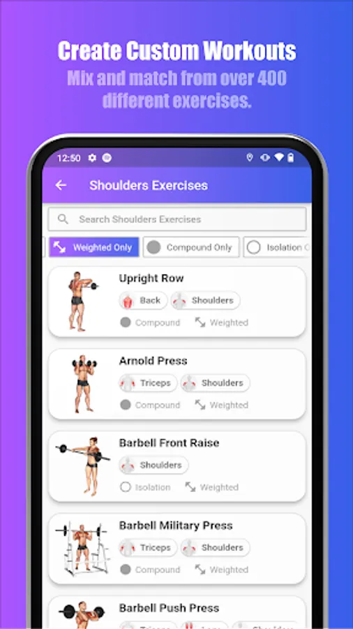 - The most comprehensive exercise catalog of any weightlifting app with over 400 exercises.