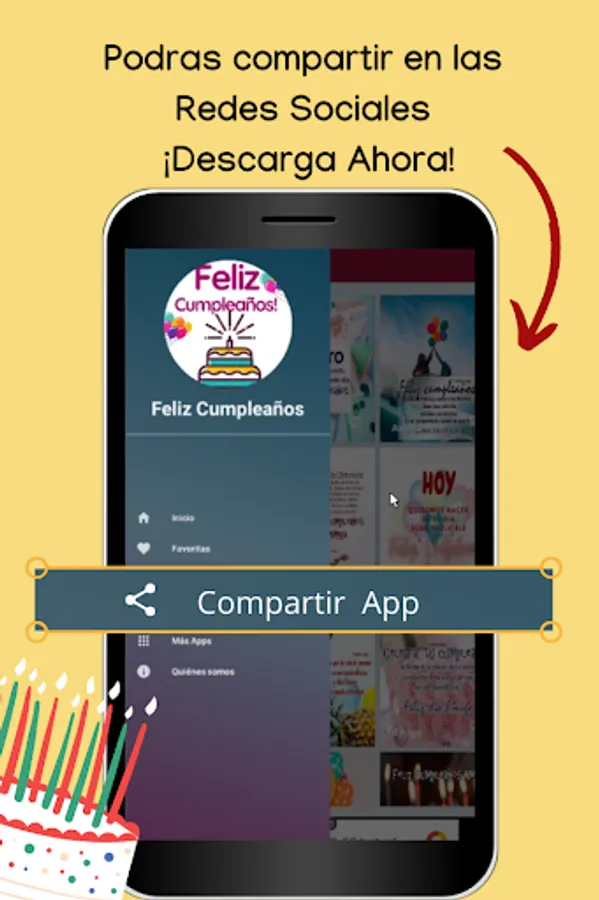 In our App you will find the best gallery of birthday images to dedicate, when you download it you will enjoy a variety of Happy Birthday phrases that you can share on your social networks with just one click.