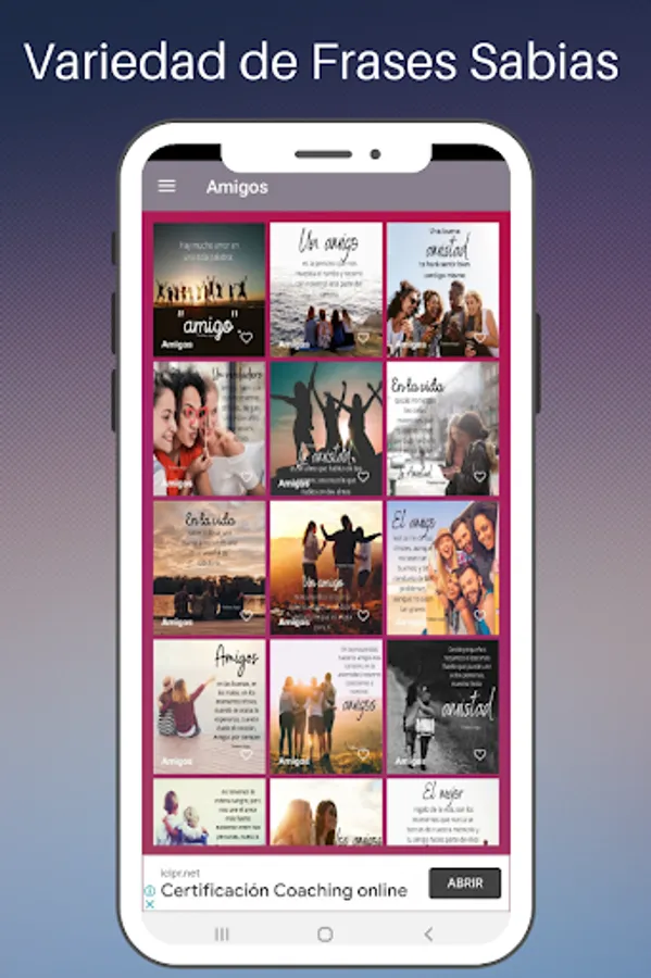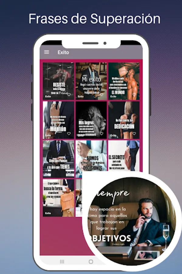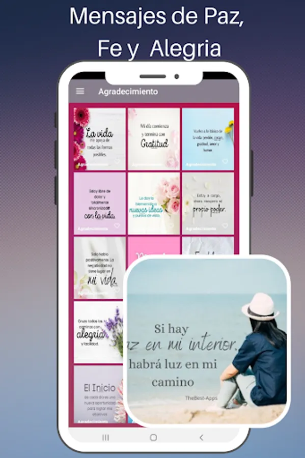 That is why our application is designed in order to provide a wide gallery with short wise phrases, we decided to organize it by themes allowing us to find the phrases according to the user's interest, these categories offer phrases of Success, thought and Reflections, Positive Affirmations , beautiful messages from God, beautiful daily phrases among other themes.