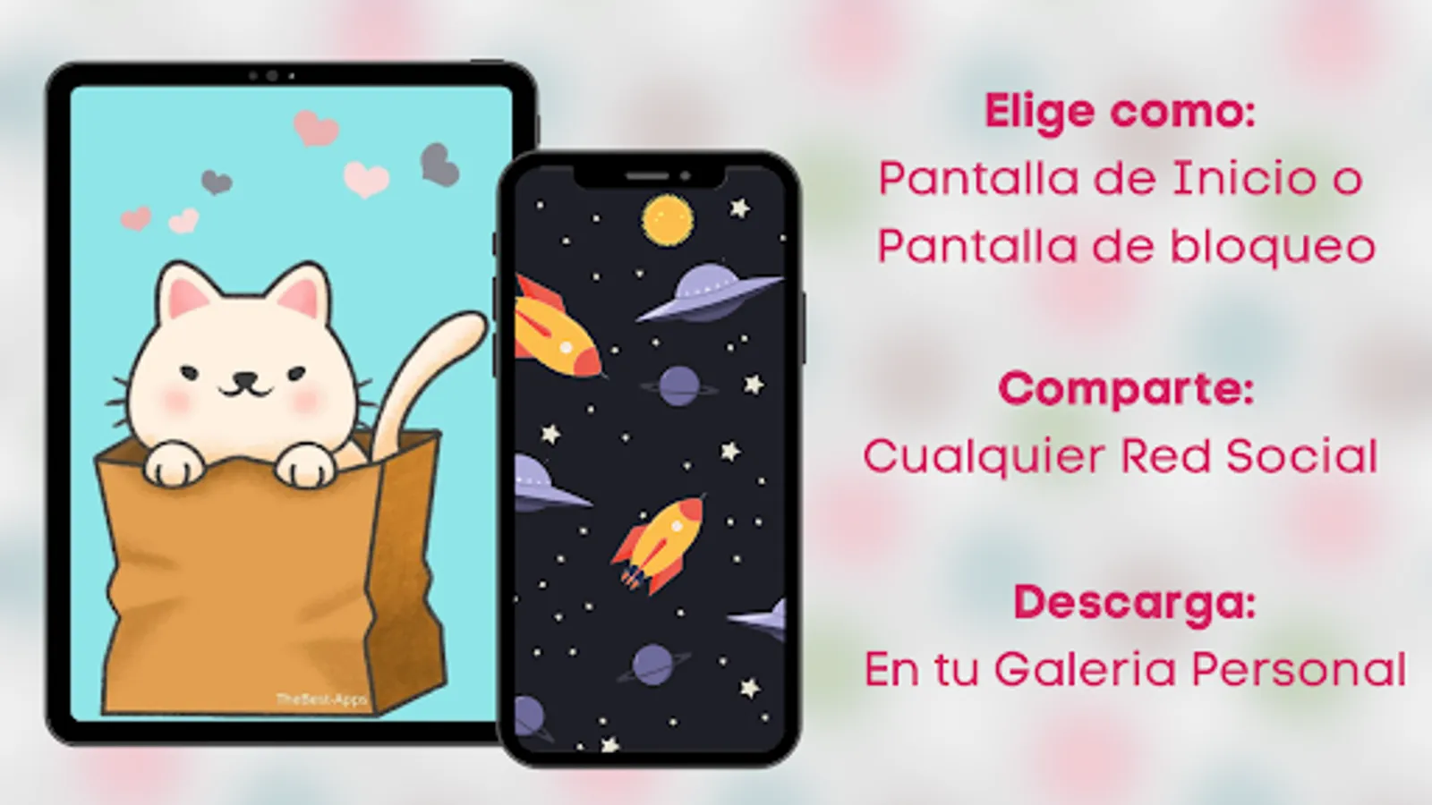 Our App is divided by categories, among them you can enjoy Wallpapers for girls, images of Flowers, Unicorn backgrounds, wallpaper of various figures, wallpapers with dogs, cute images of cats, there are also Kawaii Backgrounds, beautiful wallpapers and much more.