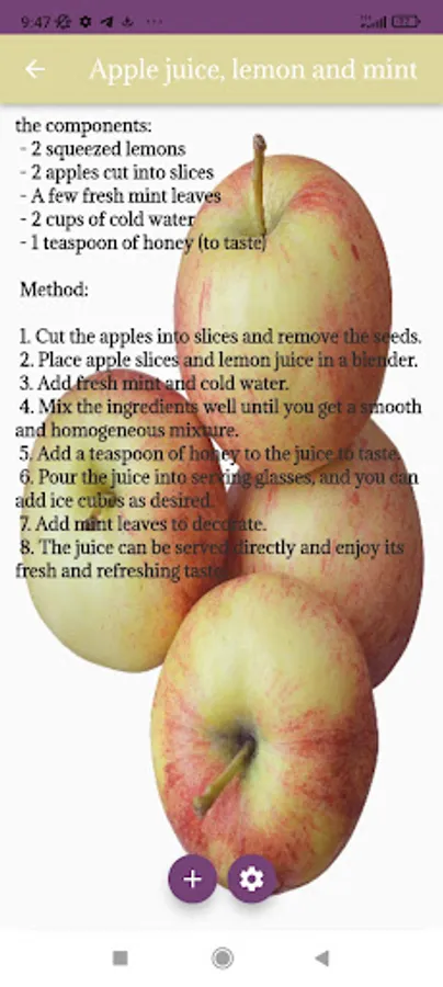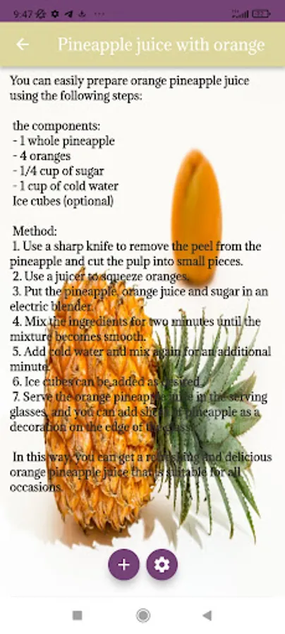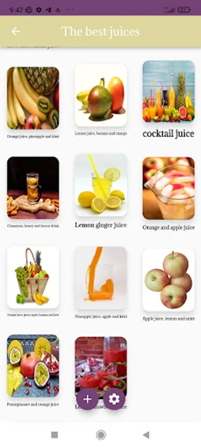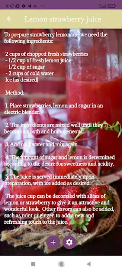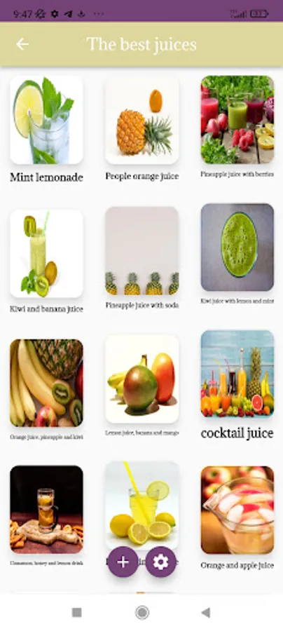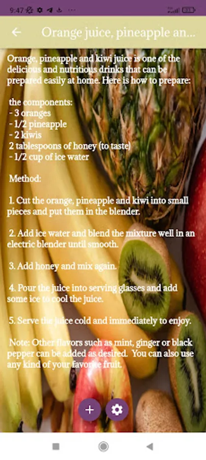 An application that provides rich content in ways and how to prepare juices of various fruits and drinks: pineapple and orange; orange, cherry and cocktail; lemon and mint; mango; strawberry; not expensive .