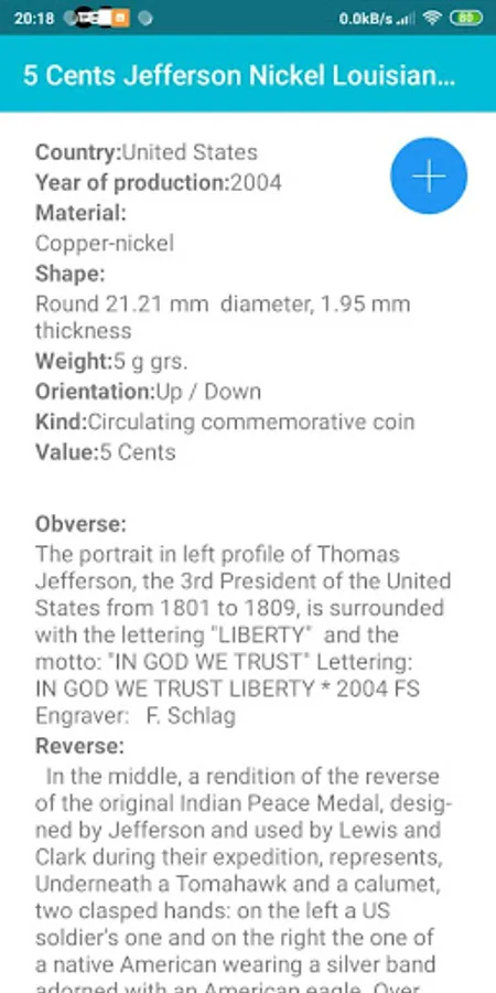 The most complete US Coins application you can find, includes coins from the year 1659 to the present. You can check the year of manufacture, the dates of issue, the material, the circumference, thickness, weight, obverse, reverse, orientation and more, each coin has images of front and back.