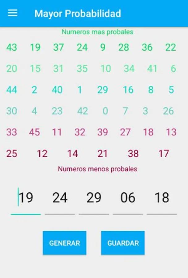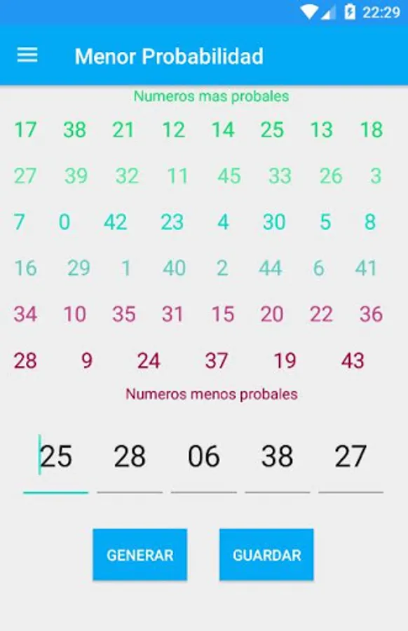 LESS PROBABILITY. Generate a number based on the numbers that have dropped the least, that is, if a number has not been released for a long time, it means that it is more likely to fall in the next draws
