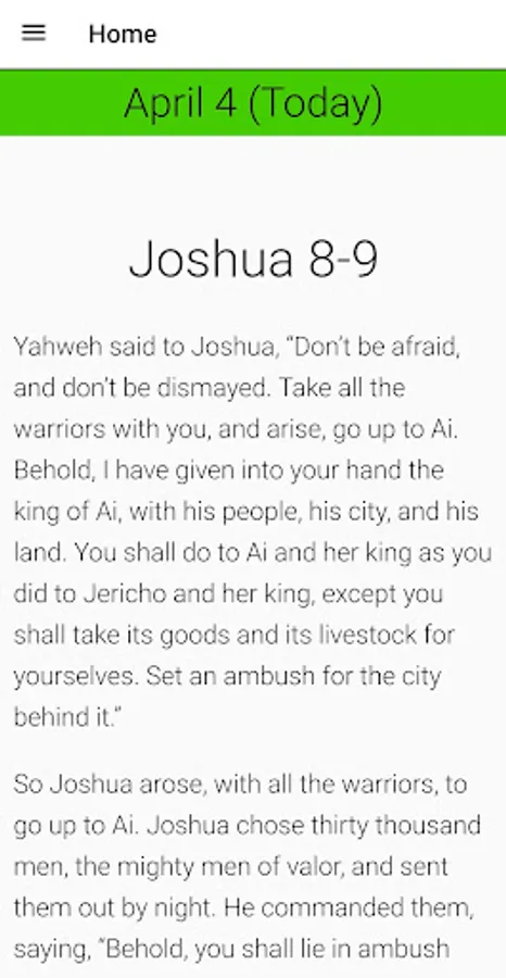 Our app features a structured program that includes readings from the Old and New Testaments, Psalms and Proverbs, and other key Bible passages.