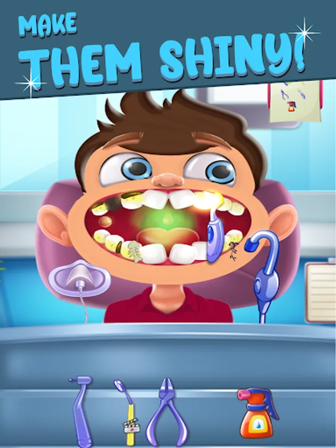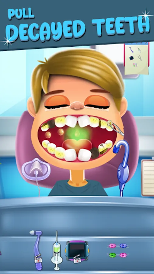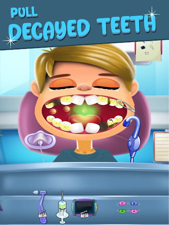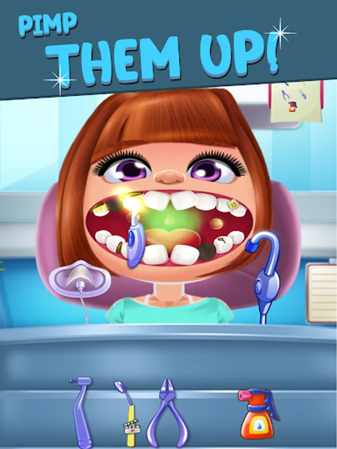 Playing doctor games might be hard, but being a dentist has never been so fun... and relaxing! One of the finest doctor games is here to make you a dentist pro! Step into your tooth salon - the best teeth surgery simulator among doctor games! Be the best dentist - treat your patients, fill their cavities, and remove that plaque. Pull out decaying teeth and replace them with shiny new ones. Kill pesky germs and apply braces.