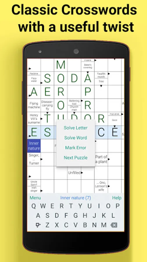 Designed for Android phones as well as tablets and written in classic British English, Clean Crossword is possibly the best free crossword puzzles game ever published for Android devices. The clues are shown right in the puzzle grid, making crossword puzzles easy to view and play. This app promises weeks of challenging fun, all for free!