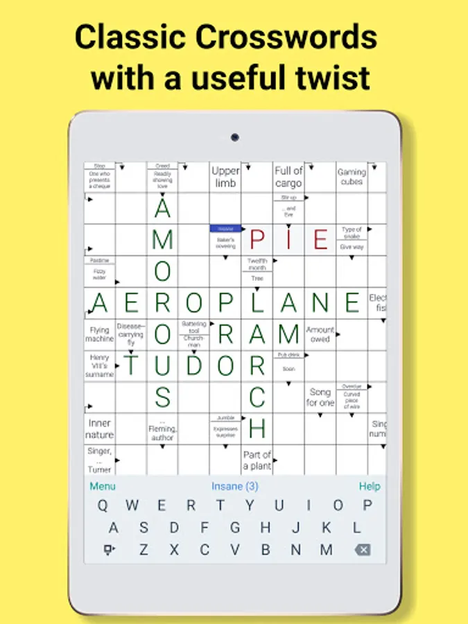 This lovingly produced app includes 1,800 puzzles in 3 levels. Easier levels use simpler words and a smaller grid, perfect for a short break. Harder levels have tougher clues and larger puzzle grids for hours of challenging fun. Also, careful editing and a huge pool of words ensure that clues don’t repeat too often.