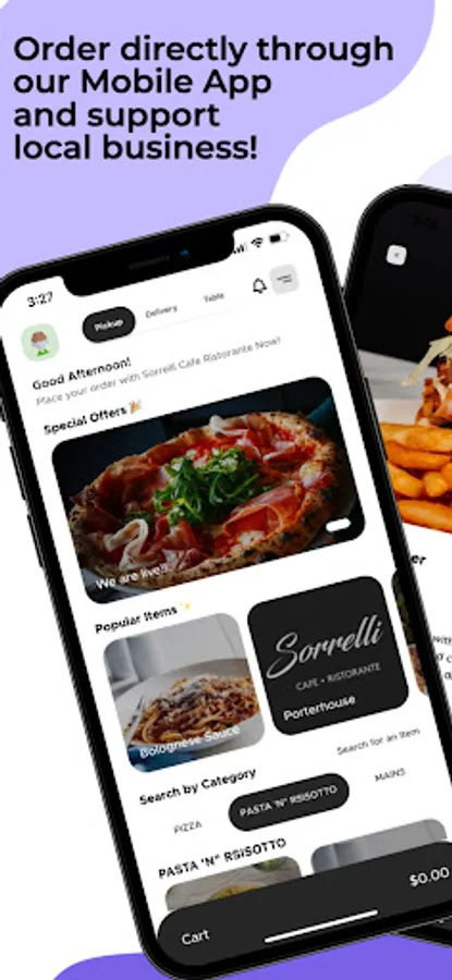 Download the the Sorelli Cafe Ristorante App today to gain access to our full menu, order through the app, receive exclusive in-app discounts and gain reward points for each order to use on future purchases!