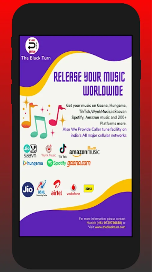 Music Distribution India150+ outlets Streaming platforms: JioSaavn, Gaana, Wynk, iTunes, Spotify, Caller Tune facility on India's all networks.