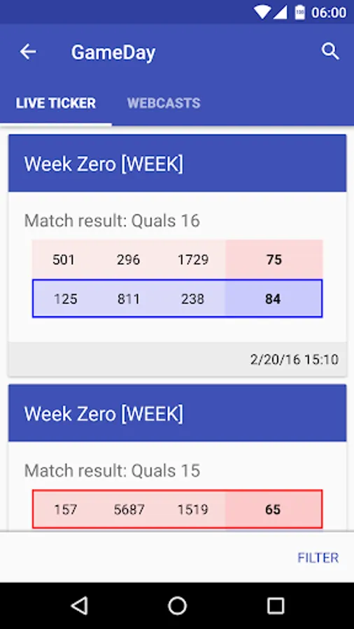 The Blue Alliance is the best way to scout, watch, and relive the FIRST Robotics Competition. Follow teams to get push notifications about upcoming matches and results, watch webcasts, and see robot photos.