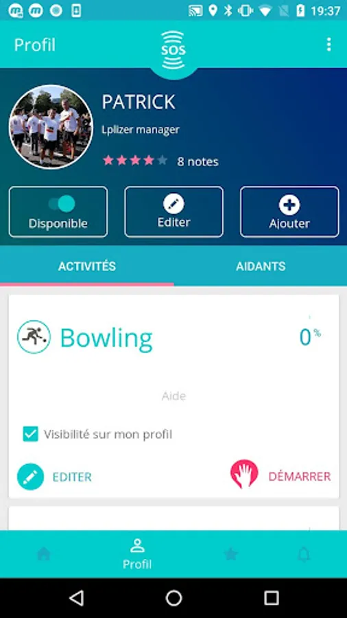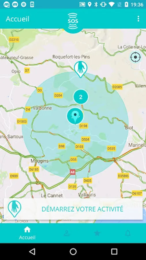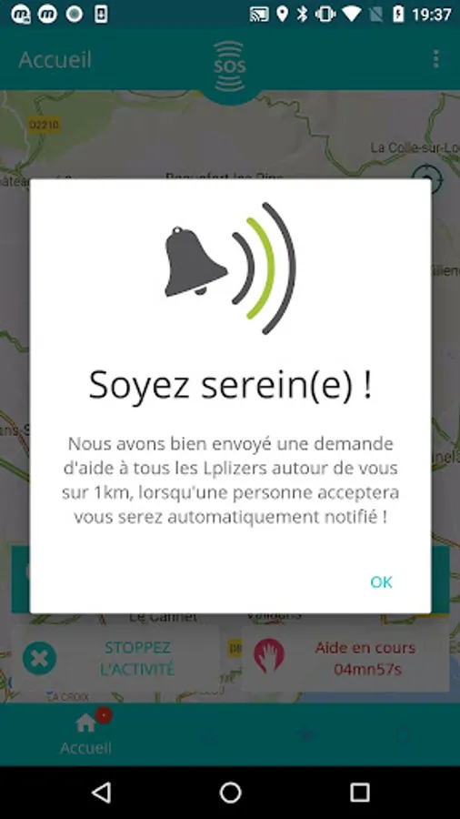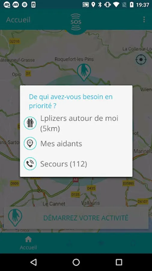 With Lpliz you realize your activities with confidence safely. The principle is simple. You represent that you start the job of your choice. At the same time, the lplizer (people of the community Lpliz) within 1km receive a notification. You see them on the map symbolized by a hand down and you, you are the center of the circle.