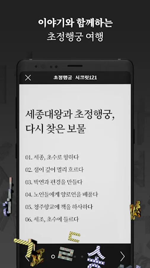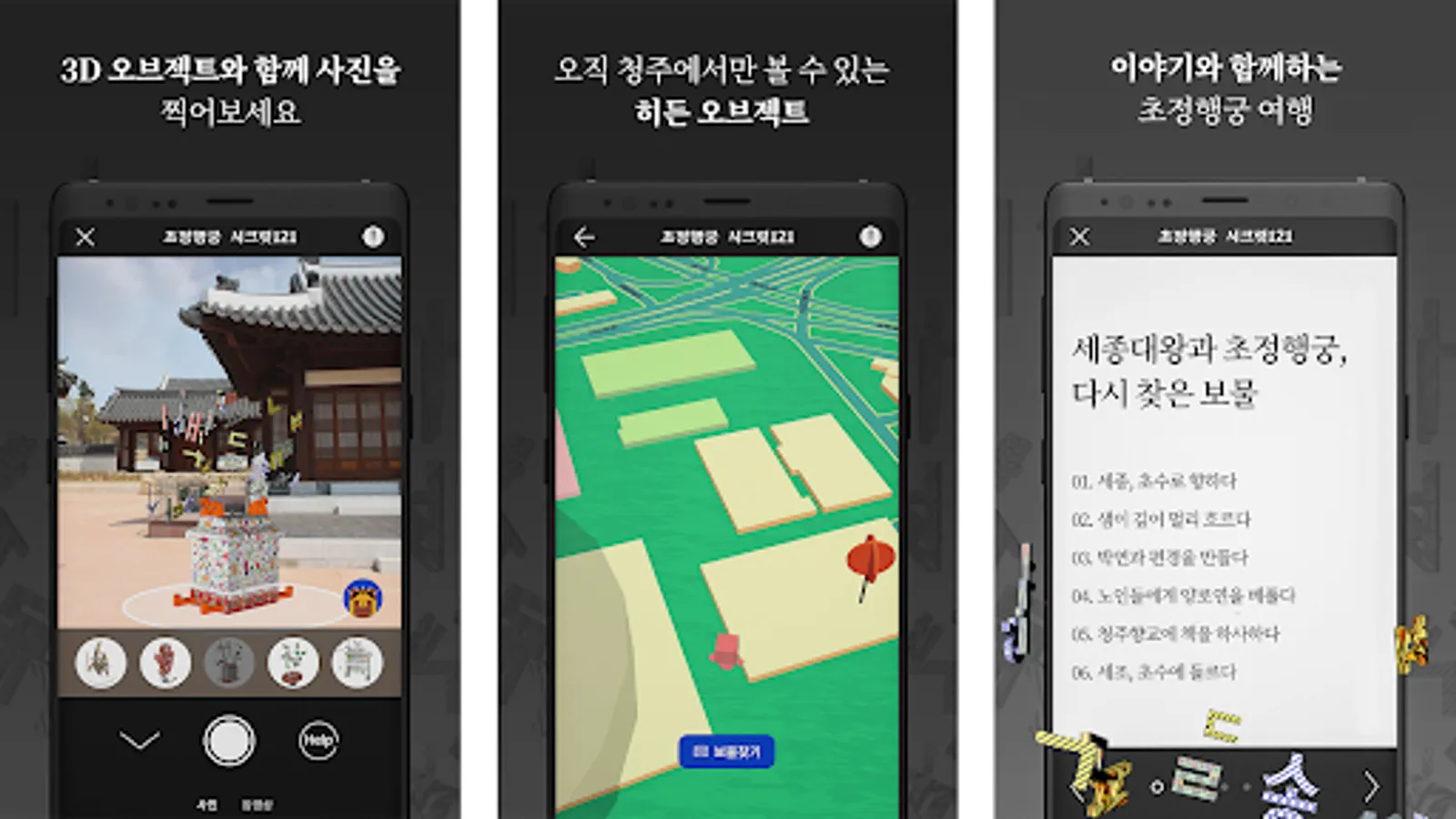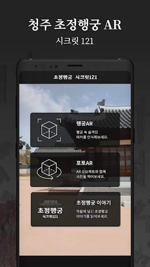 Based on the story of Chojeong Haenggung, it is an application that allows you to appreciate the works of AR media artist Tian through augmented reality. It is an application that can read the story of each work at the same time.