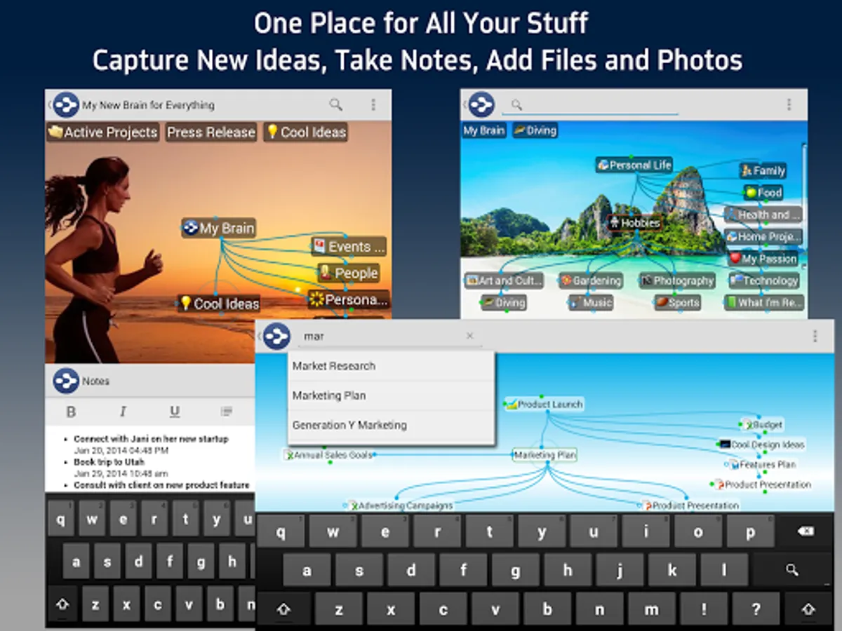 • Go from ideas to action by capturing all your goals and then adding even more connected Thoughts and all the right information to achieve and get things done.